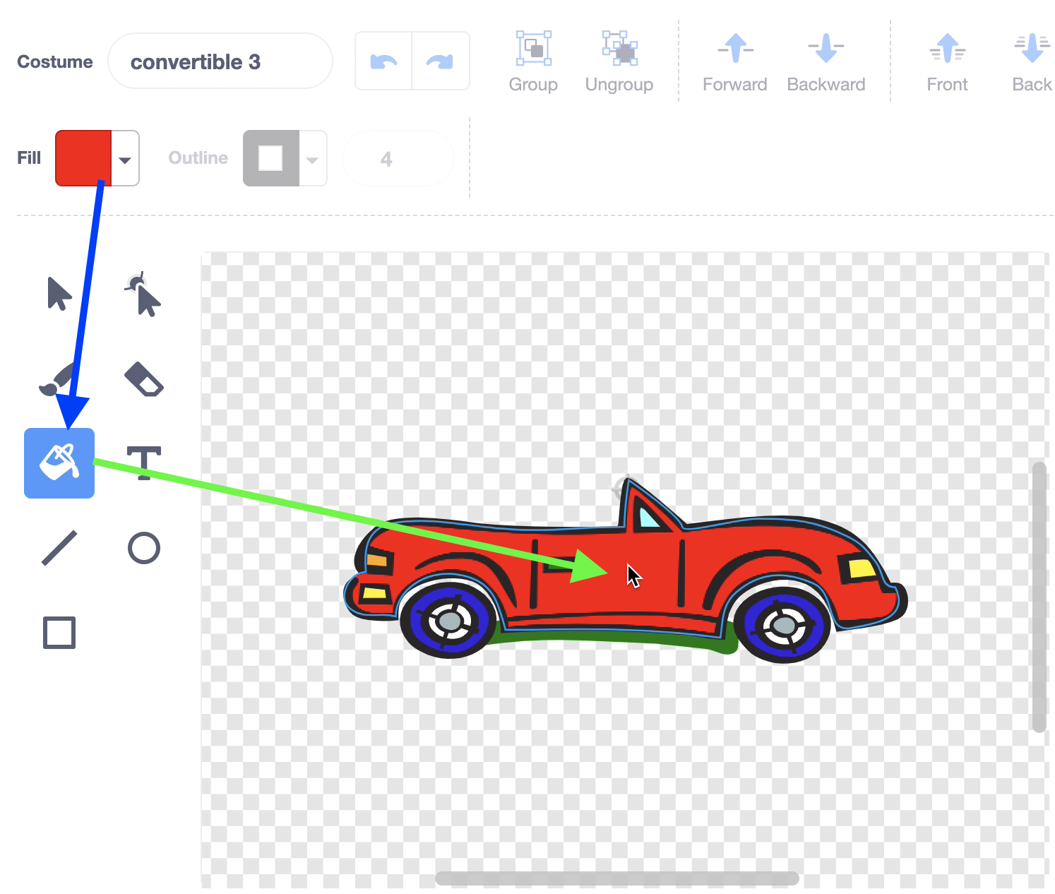 Step8. Let's change the color of the car. Select the Costumes tab.