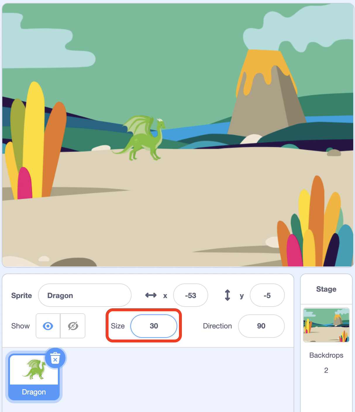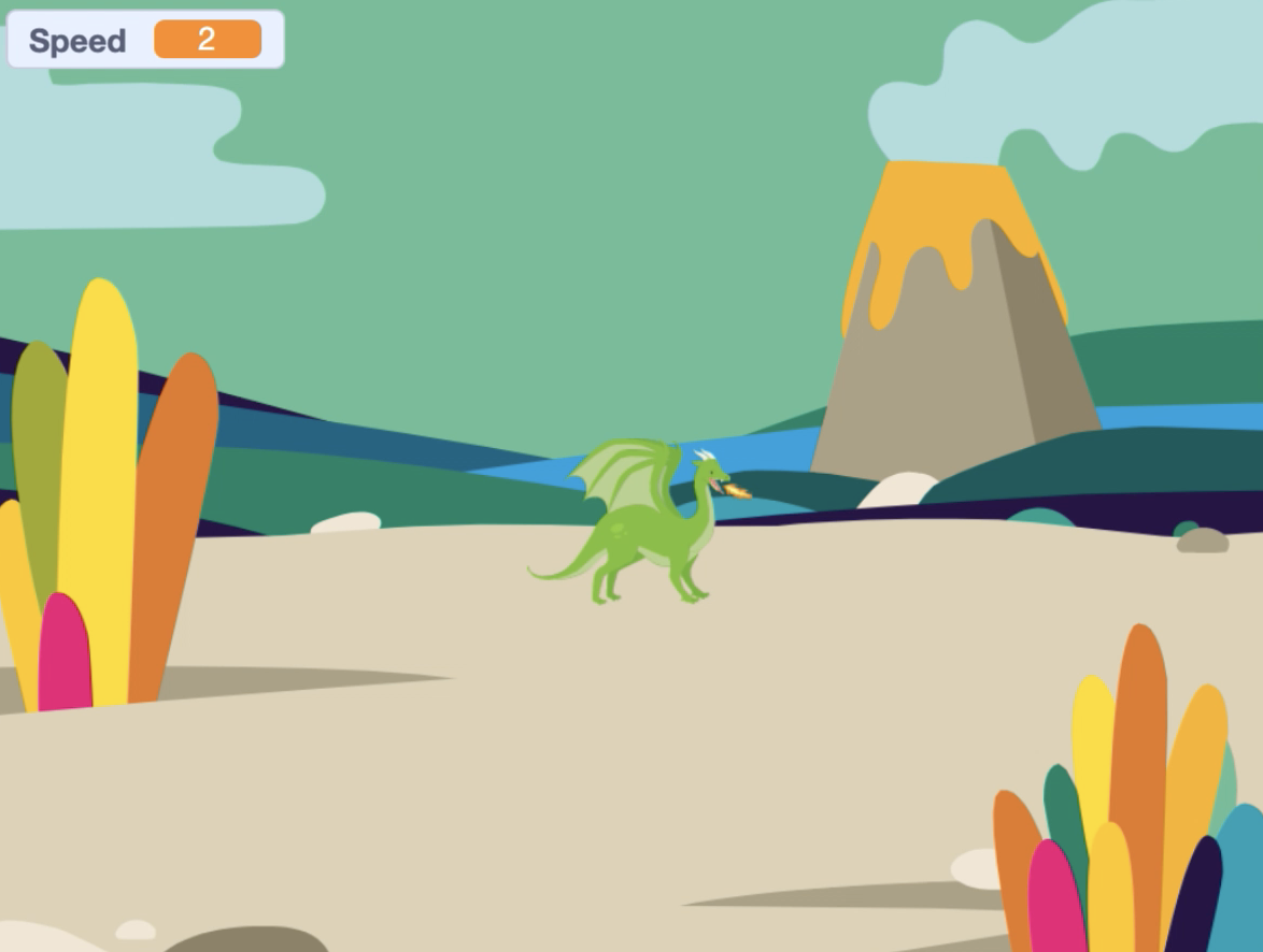 Step12. Click on the green flag and move Dragon to the keyboard direction key.